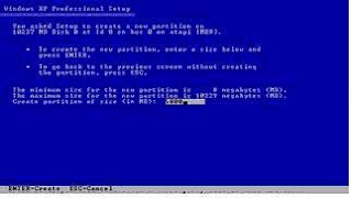 - Ketika pada screen anda terlihat seperti pada gambar di atas, maka anda diharuskan untuk membuat partisi pada Unpartitioned space dengan menggeser cursor anda ke situ kemudian tekan C , maka akan terlihat di screen anda seperti pada gambar di bawah ini